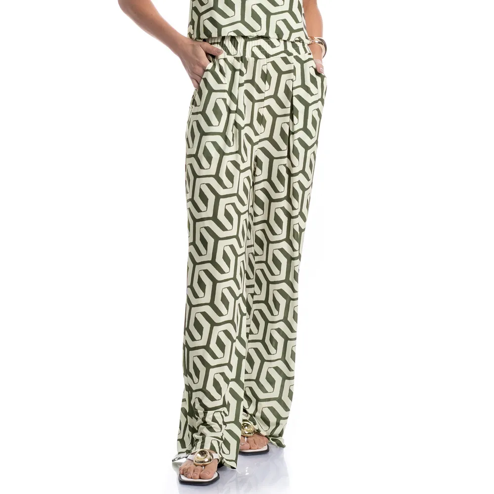 Calça Feminina Com Bolso combinação perfeita de conforto e estilo para os dias mais leves da estação. Com modelagem ampla e caimento solto, a peça conta com bolsos laterais funcionais e cós com elástico macio, que garante ajuste confortável ao corpo. A estampa traz um toque moderno e cheio de atitude, ideal para compor looks versáteis e descomplicados com muita personalidade.