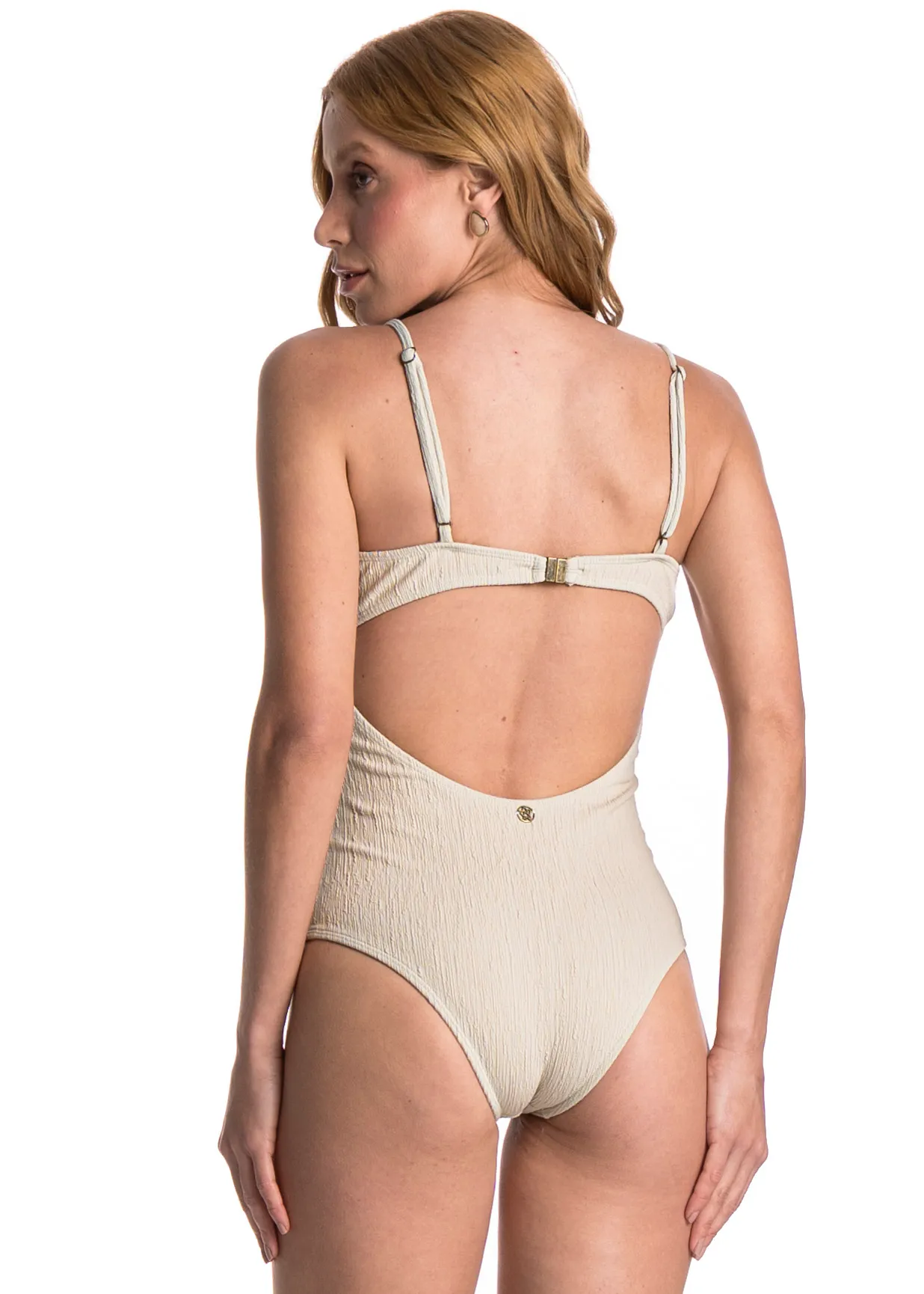 tecido jMaiô Com Argola Dunas perfeito os dias de sol! Maiô com decote em V na frente e costas com abertura e fecho magnético, com uma tecnologia de ímã além do encaixe normal, facilitando o fechamento e garantindo dupla segurança. Proporciona conforto e mobilidade, além de versatilidade que pode ser usada em muitas combinações. Seu bojo é removível. O Maiô Ondas proporciona estilo e tendência para você desfrutar o melhor da estação! Confeccionado em Jacquard de Poliamida de alta qualidade, este tecido se destaca pelo visual sofisticado e pela textura única em relevo. O volume enrugado e os desenhos apresentam variações sutis de acordo com a partida, conferindo exclusividade a cada peça produzida.