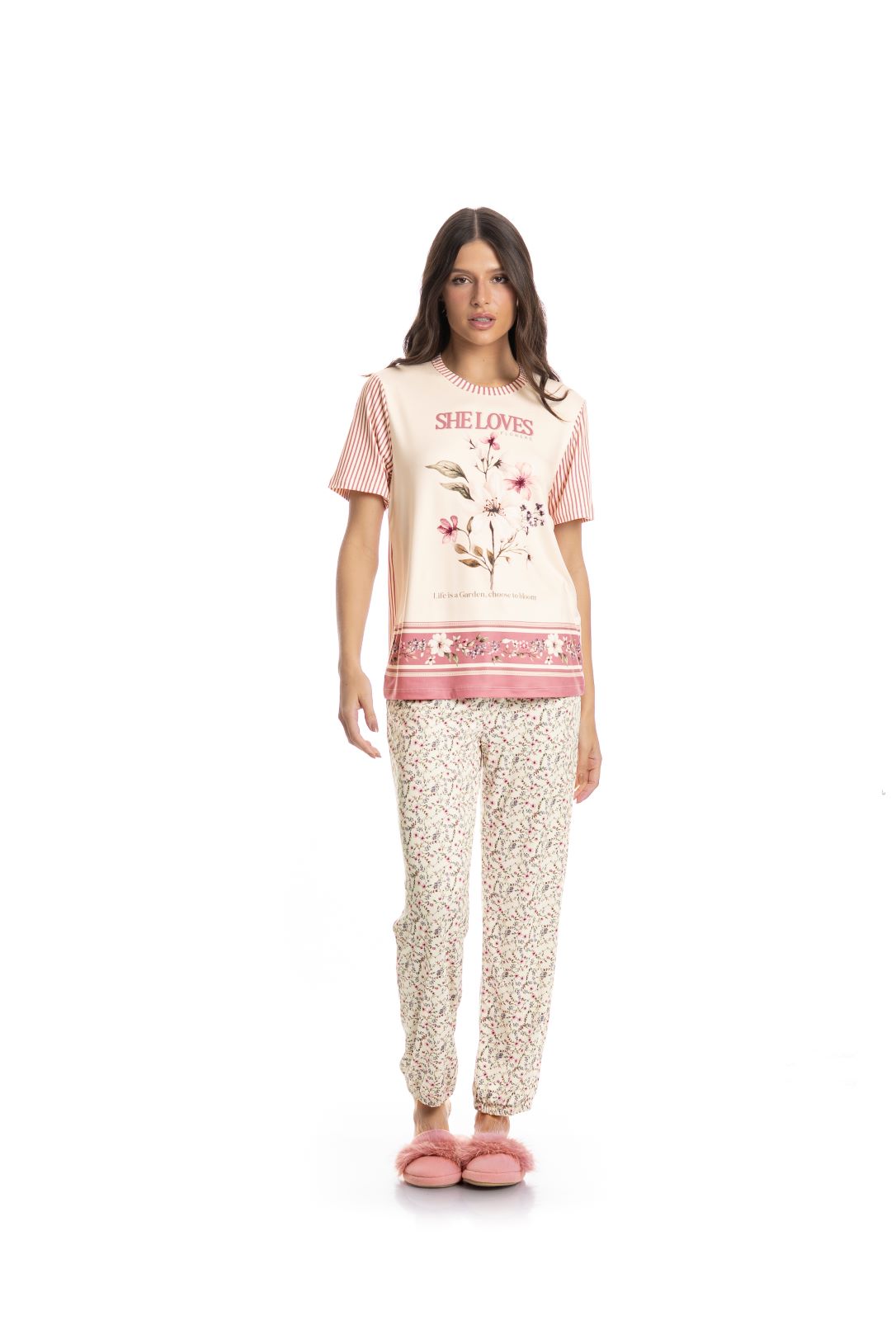 PIJAMA LONGO MANGA CURTA I FLOWERS