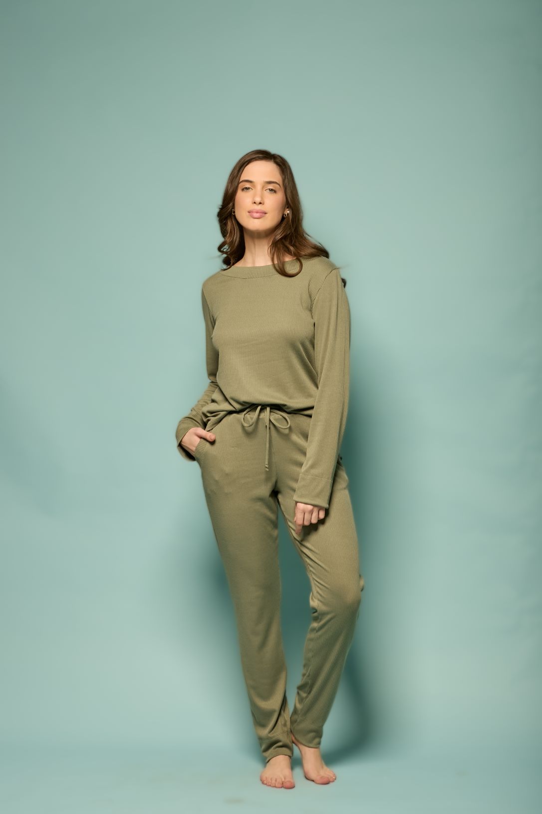 Pijama calça comprida com blusa de manga longa, perfeito para quem busca conforto com estilo. Confeccionado em malha macia e canelada, possui toque suave e excelente caimento ao corpo. A blusa tem modelagem levemente solta, enquanto a calça conta com elástico e amarração na cintura, garantindo ajuste confortável e prático. Disponível em cores versáteis, é ideal para momentos de descanso com elegância e bem-estar.