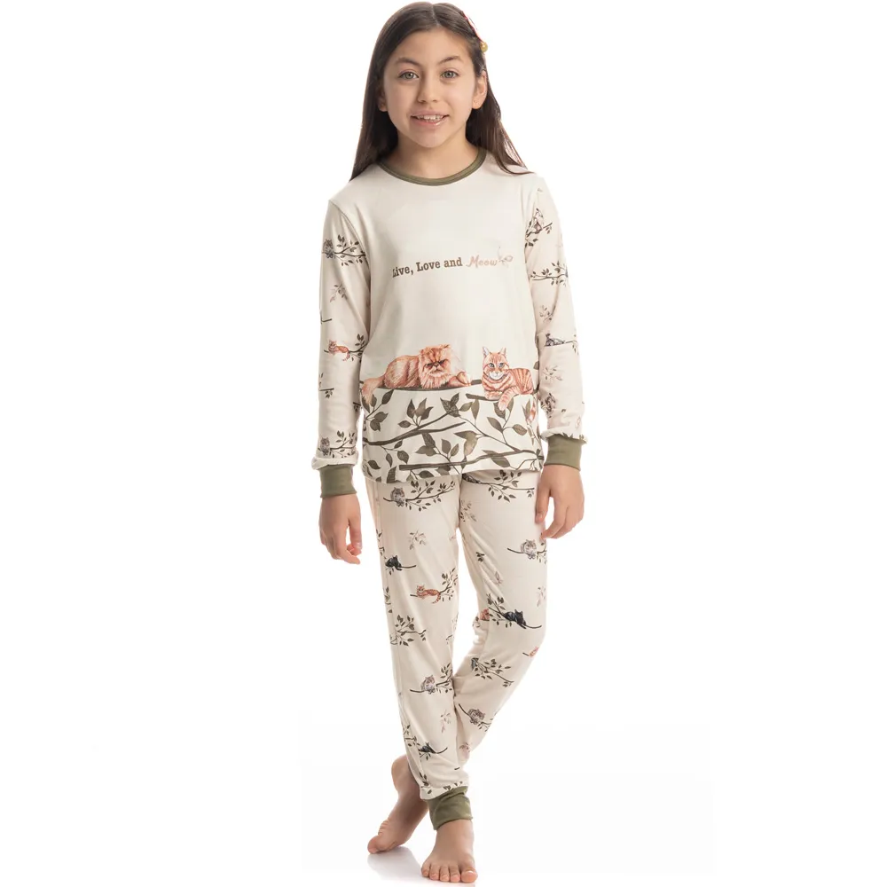 Deixe as noites mais confortáveis e cheias de estilo com este pijama longo feminino infantil! Com uma estampa encantadora de gatinhos, ele conquista à primeira vista. Produzido em uma combinação de poliéster com elastano, o tecido extremamente macio e aconchegante abraça a pele com suavidade. Além de garantir conforto absoluto, o material proporciona durabilidade e praticidade para o dia a dia. Ideal para acompanhar os momentos de descanso com charme e qualidade.